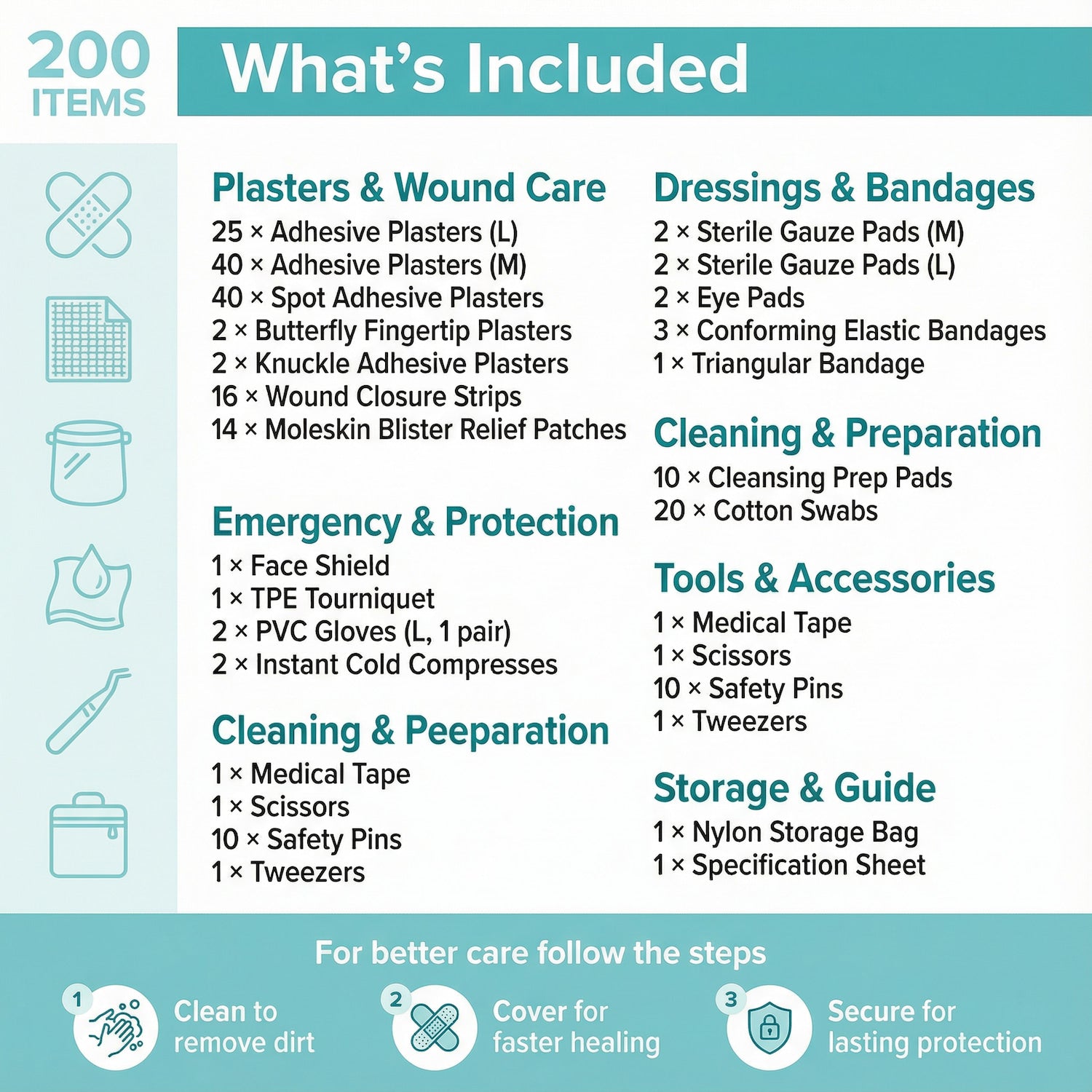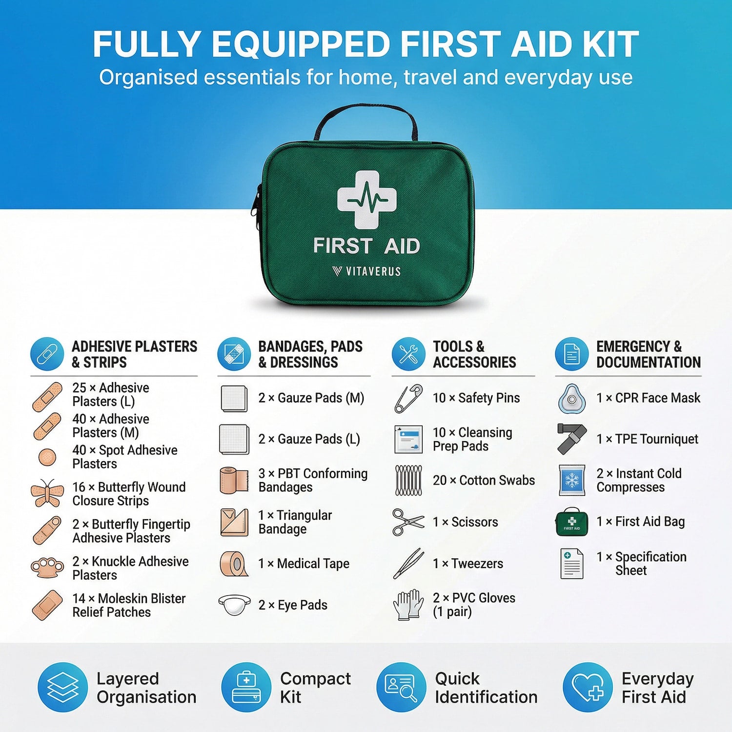 Premium First Aid Kit – 200 Piece (Home, Travel, Workplace, Vehicle)