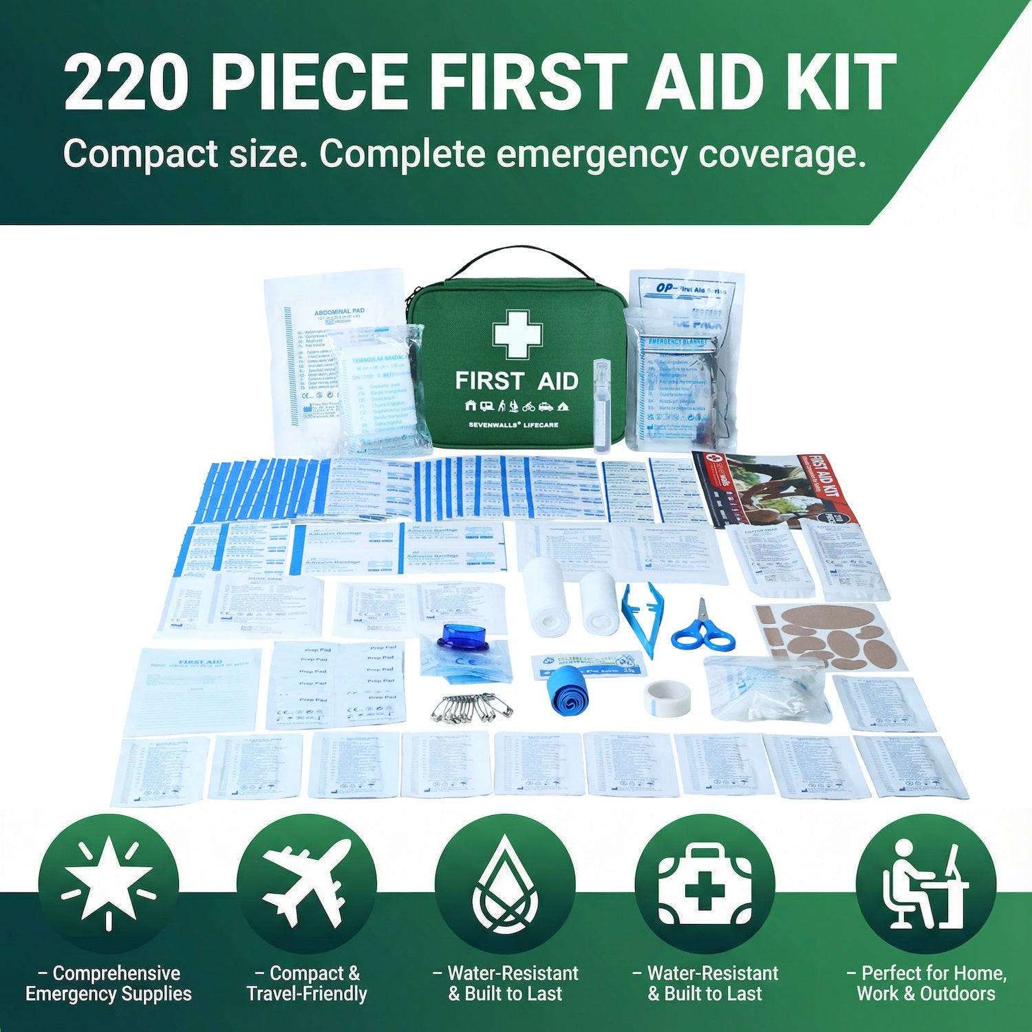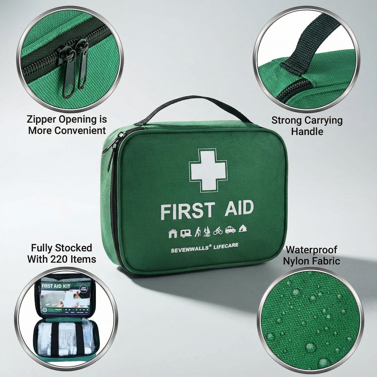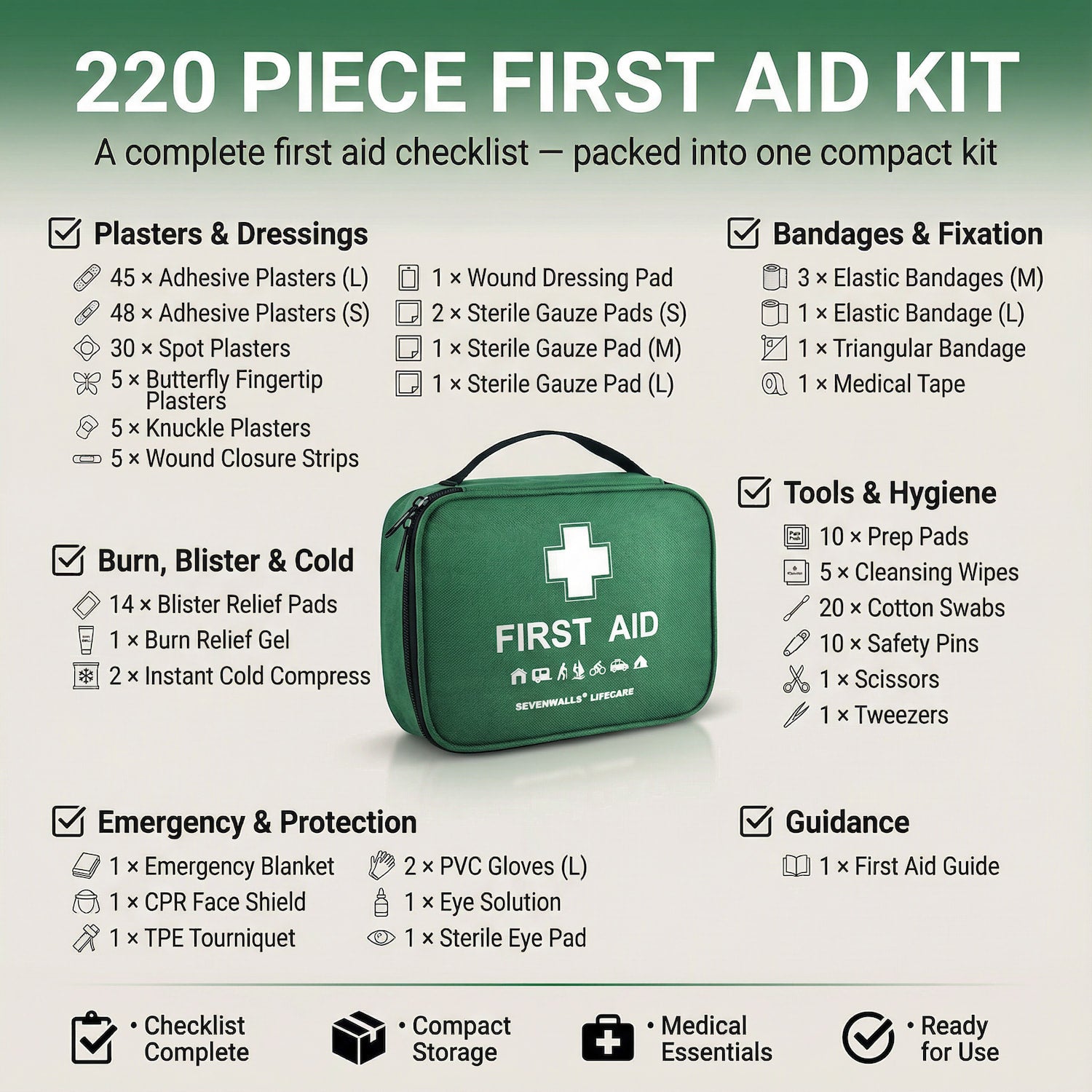 Premium First Aid Kit – 220 Piece (Home, Travel, Holidays, Sports, Workplace, Car)